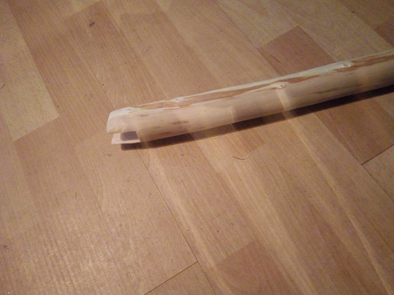 So bis jetzt sitze ich da etwa 3 Stunden dran, aber ist ja noch lange nicht fertig. Im Stecken wird vermutlich ein Schlitz sein, wo ich den Kopf drauf setzen werde, um beides dann mittels Leim und Nägel zu befestigen. So die Theorie ^^