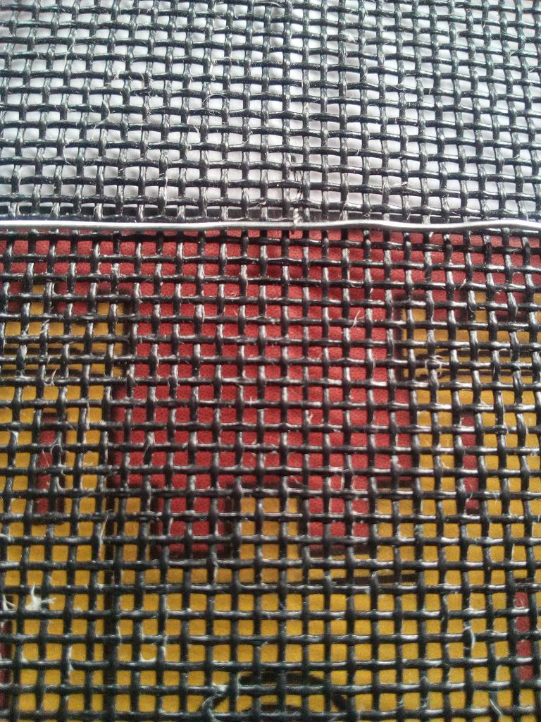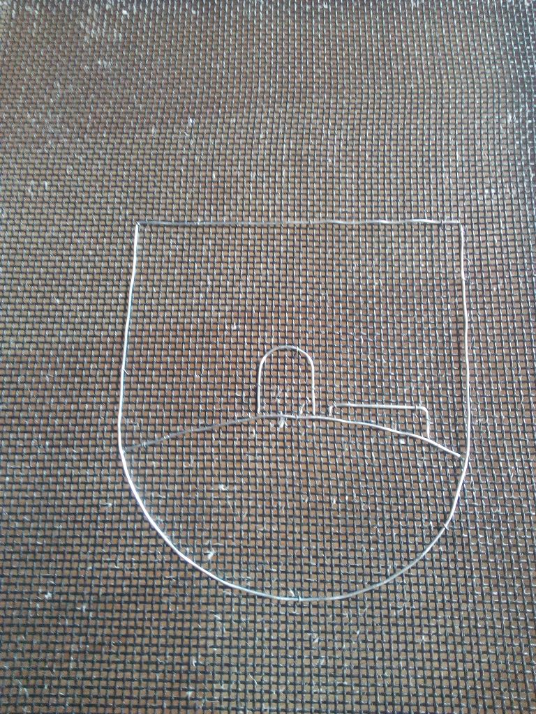 Und hier nun in der grösseren Übersicht. Nun kann man sich ein wenig schon vorstellen, wie das Endprodukt aussehen könnte. Wie man sieht, es scheint nicht ganz einfach. Schwierig ist halt, den Draht ohne Wellen hinzubekommen. Ziehen des Drahtes bei diesem Draht hat nicht ganz funktioniert. Vielleicht werde ich bei einer anderen Version kein Gartendraht nehmen, sondern einen den man eher für Bastelarbeiten benutzt (aber wenn gerade nichts zur Hand ist ^^). Schwierig ist auch das ganze so zu fixieren, das es dem Original nahe kommt. Durch das Gitter des Geflechts ist das ganze nämlich nicht so einfach. In der Mitte der Löcher lässt sich nämlich nichts fest machen.