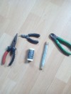 Damit ich auch anfangen kann, benötigt es Material und Werkzeug. Hier nicht ganz Zeitgerecht, aber praktisch. Dünner draht für die Fixierung und dickerer Draht für das Motiv. Ich hoffe man sieht wenig am Ende von der Fixierung.
