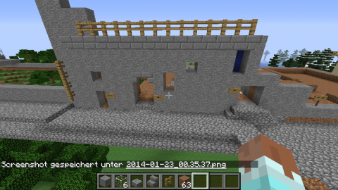 Kurz zur Vorstellung noch was Minecraft an sich ist. Im groben und ganzen ist es einfach ein Spiel, kostet aktuell knappe 20 Euro. Man baut Blöcke aus verschiedenen Material ab und kann daraus alles mögliche bauen. In der Minecrafttheorie hat ein Block die Maße von 1x1x1 Meter. Diesen Maßstab muss man dann für Bauwerke wie Burgen natürlich anpassen das man am ende auch alles gebaut bekommt das es proportional auch noch passt und man nicht ein verzehrtes Bild erzeugt.