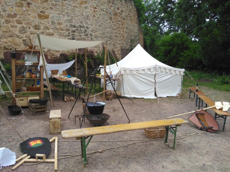 Auch in diesem Jahr sollte das Heerlager auf der Tannenburg zusammenkommen. Die Vorhut schlug bereits ein paar Tage vorher ihre Zelte unterhalb der Burg auf. Sie übernahmen die Planung der Vergabe der Lagerplätze, sprach sich mit der Burgbesatzung ab, wann welches Mahl gereicht wurde und sorgte dafür, dass die Wege ausreichend geschottert waren, damit kein Rad brechen solle.