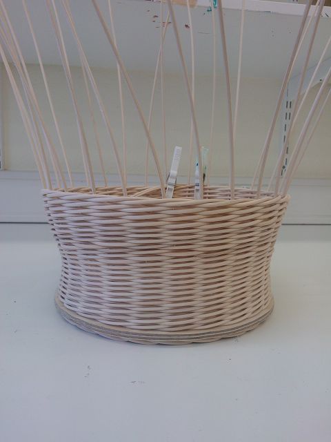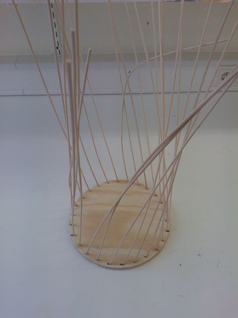 Ich habe hier Stengel in der Stärke 2,5mm und 3mm benutzt. Die breiten für die Stangen nach oben und die etwas kleineren dann für die Wand des Korbes.
